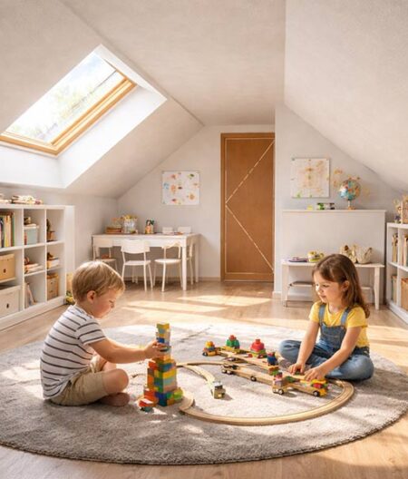 À Sagy, cette ferme bressane poursuit son histoire à travers une rénovation délicate et mesurée. Sous la toiture, les combles s’animent : deux chambres, une salle de bain et des espaces de rangement se glissent dans la sous-pente, épousant la charpente et valorisant chaque volume. Le projet révèle le potentiel du bâti existant en transformant l’espace autrefois dormant en un lieu intime et lumineux.