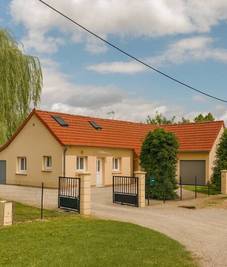 À Saint-Germain-du-Plain, cette extension accompagne un nouveau chapitre de vie. Pensée pour un couple de retraités souhaitant un plain-pied confortable et accessible, elle prolonge la maison existante avec douceur et évidence. Le volume, inspiré de l’esprit bressan, s’inscrit avec mesure et s’oriente généreusement vers la lumière. Les matériaux sont revisités avec délicatesse — les tuiles de verre notamment, dans un équilibre entre tradition et adaptation aux usages d’aujourd’hui